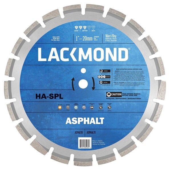 The SPL Series Asphalt/Block Blade is an excellent cost-performance value designed to be used on both hand held and low horsepower walk behind saws. They are engineered with U-channel gullets and wedge segments which help remove debris, keep the blade cool, and provide undercut protection.