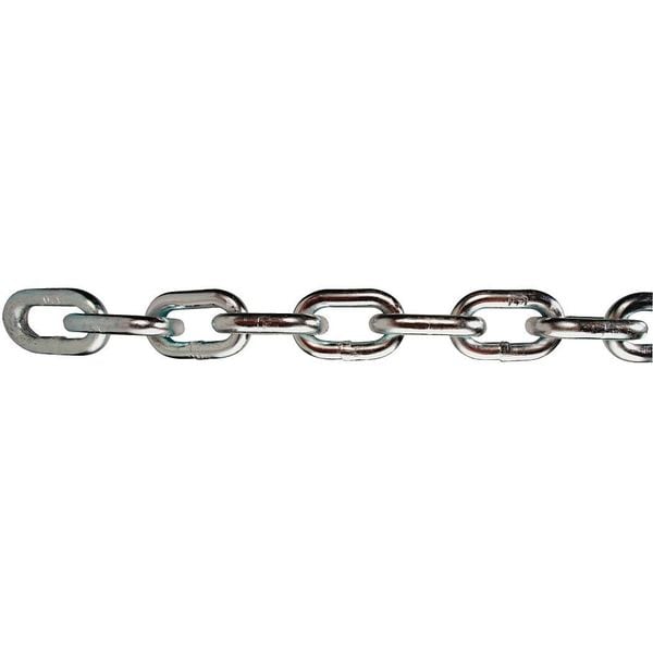 Chain, Chain Type High Test Chain, Material Steel, Lifting Capability Not for Lifting, Working Load Limit 3,900 lb, Chain Grade 43, Trade Size 5/16 in, Link Type Straight, Overall Length 90 ft, Links per Foot 10 to 11, Includes Hook No Hook Included, Finish Galvanized, Welding Type Welded