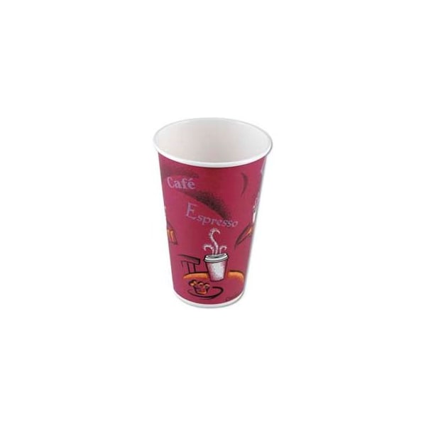 Hot drink cups, polylined paper, 8 oz, bistro design, maroon, 50/bag features: attractive coffee-themed cup is ideal for hot beverages brings upscale appearance to any food service this product arrives to most customers in 2-3 business days.