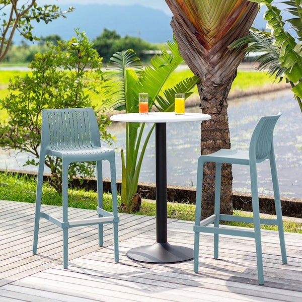 The Milos barstool stool has a simple yet elegant design that makes for an extremely comfortable ergonomic sitting piece. The slightly curved back supports you effortlessly while the footrest allows your feet to rest without the worry of scratches or scuff marks. These barstools are made of high-quality resin and have anti-skid footpads to protect your floors, while adding stability. Designed with convenience in mind, they are stackable and space saving. Easy to clean, just wipe with water. No assembly required.