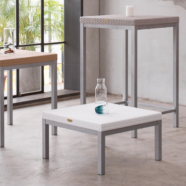 Need a place to put your poolside snacks or beverages or simply searching for that perfect accompaniment to your patio set? This table may just be the one. It is made with durable aluminum legs and is wrapped in a fade-resistant rattan weave. This contemporary table will blend seamlessly into your outdoor living space. Superior quality for residential or commercial use. Wipe clean with cloth and water.