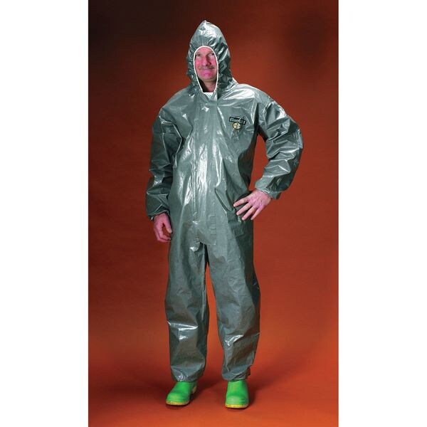 Hooded Chemical-Resistant Coveralls, Closure Type Zipper, Color Gray, Coverall Style Hooded Coverall, Package Quantity 6