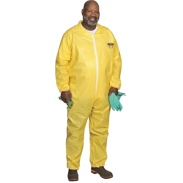 The ChemMAX 1 Coverall blocks many harmful contaminants from penetrating to inner clothing. These coveralls are constructed of polyethylene barrier film and continuous-filament, non woven polypropylene and feature serged seams to protect you from dry particulates and light chemical splashes. Elastic wrists and ankles allow for task-specific gloves and footwear yet provide a snug fit for better protection from moisture and contaminants. Fabric weighs 2.29 oz./sq. yd. Zipper front. Sold individually. One size fits most. Yellow color.