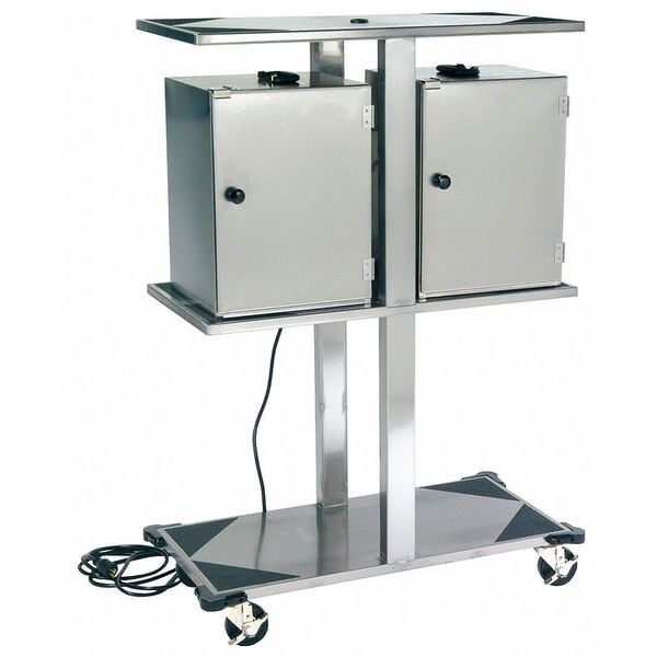 Food Carrier Box, For Use With Solid Fuel Food Carrier Boxes, Number of Compartments 2, Includes 15 ft Power Cord with NEMA 5-20P Plug, Flat Shelves with Non-Slip Pads, Material Stainless Steel, Product Type Food Carrier Box, Caster Type (2) Swivel, (2) Swivel with Brakes, Color Silver, NSF Certified No, Loading Orientation Side-Load