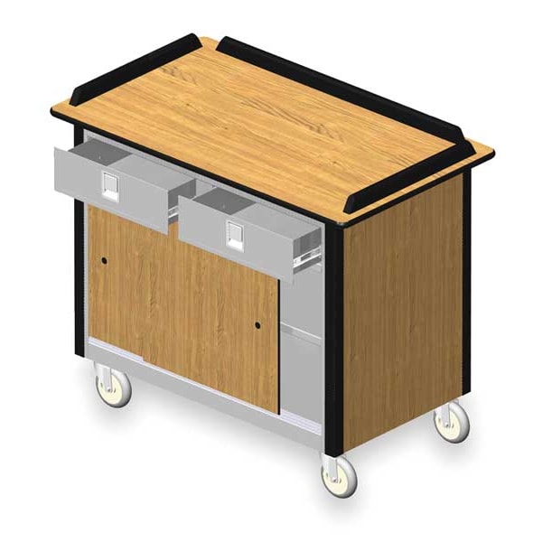 Hydration Cart, Overall Length 44 1/2 in, Number of Drawers 1, Number of Shelves 2, Overall Width 26 in, Overall Height 38 in, Caster Type Swivel with Brake, Product Type Hydration Cart, Caster Material Cushion, Color Light Maple, Drawer Depth 23 3/4 in, Drawer Height 10 1/2 in, 5 1/2 in, 9 in, Includes (2) 3 in Utility Drawers, Storage Compartment with Sliding Doors, Material Stainless Steel