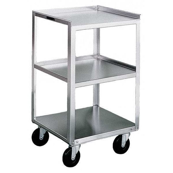 Mobile Equipment Stand, Overall Length 18 3/4 in, Overall Depth 16 3/4 in, Folding No, Finish Stainless Steel, Color Silver, Duty Type Medium Duty, Product Type Mobile Equipment Stand, Adjustable Height No, Maximum Load Capacity 300 lb, Caster Type (4) Swivel, Enclosed/Open/Partially Enclosed Open, Gauge 20 ga, Material Stainless Steel, Number of Casters 4, Number of Shelves 3, Overall Height 30 1/8 in, NSF Certified No