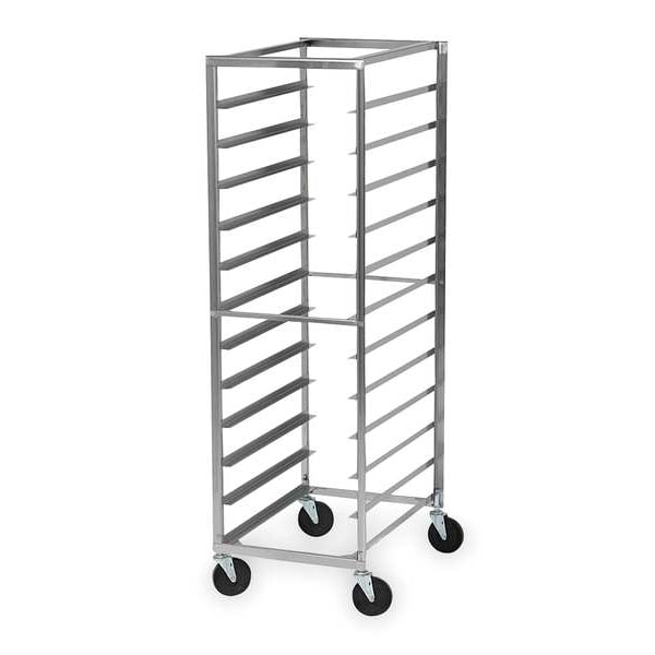 Pan and Tray Rack, Nesting No, Load Capacity 400 lb, Overall Height 68 1/2 in, Brake No, Overall Width 21 in, Product Type Pan Rack, Caster Type (4) Swivel, Color Gray, Depth 29 1/4 in, Distance Between Shelves 5 in, Enclosed/Open/Partially Enclosed Open, Number of Slots 12, Includes Top No, Material Stainless Steel, Compatible Sheet Pan Size Full Size, Compatible Pan/Tray Dimensions 18 x 26 in, NSF Certified Yes, Size Full Size