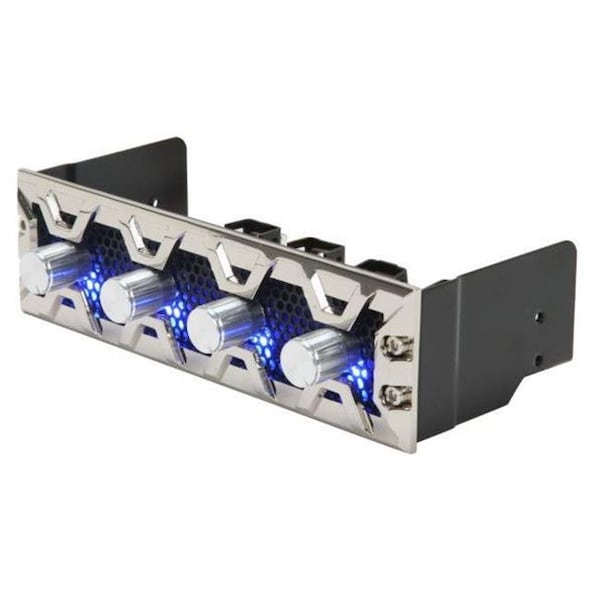 Lamptron 832-103-02 Fan Controller; 30W x 4 Channels; Blue Led; Silver Aluminum Bezel