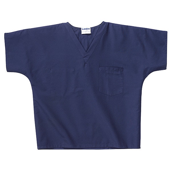 Scrub Shirt, Color Navy, Gender Unisex, Material Cotton/Polyester, Size L, Style Shirt, Number of Outside Pockets 2, Reusability Reusable, Cuff Style Dolman Sleeves, Sleeve Type Short, Length 27 1/2 in, Front Closure Type Pullover, Maximum Chest Size 44 in, Minimum Chest Size 42 in, Collar Style V-Neck, Features Reversible, Fit Relaxed Fit, Size-Body Type Regular