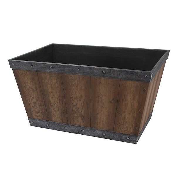 Barn Planter, 12 in H, 24 in W, Rectangle, High-Density Resin, Brown, Brown