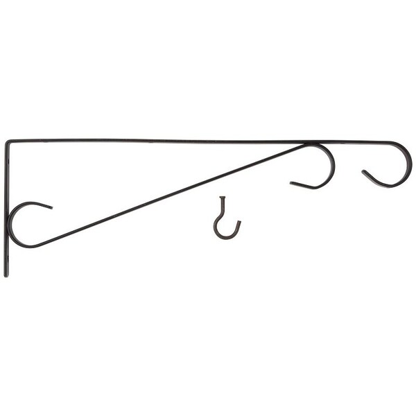 Hanging Plant Bracket, 15-1/2 L, Steel, Black, Wall Mount Mounting