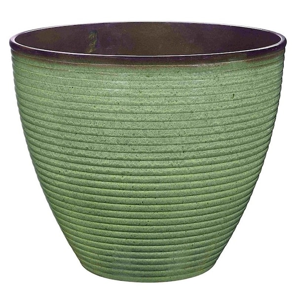 Landscapers Select Wave Planter, Floor standing, Round, 0.625 cu-ft, Green, Green Wave, Resin, Number of Tiers: 1, 15 Dia, 12.5 H, Indoor/Outdoor: Indoor/Outdoor