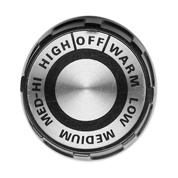 Infinite Switch Knob, Black & Silver;Off-Warm-Low-Medium-Medium Hi- High;2" Dia, 3/16" D-Stem Flat Down;For Infinite Switch # 42-1094;Lang;Broiler 1B(012,030,C12S,O18S), 2B(C24S,O30S),36S-(Sh,Sh-M).;Range 32S (With S/N Before C35556), 36S (With S/N Before; C35847), 43S, 60S (With S/N Before C35847), 500S (With; S/N Before C35145), Csu-12, Sr-18~; 50Ms & 72S (With; S/N Before C35847)~; Rf21S & Rf42S (With S/N Before; C35556).