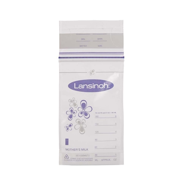 These breast milk freezer bags hold 6 ounces of milk each.The bags use BPA- and BPS- free materials.Pump breast milk directly into the Lansinoh breast milk storage bags with a Lansinoh pump.A double-zipper closure and double-seal, reinforced side seams prevent leaksAn adapter is available separately for use with other pumps.Measurements are clearly marked in both Imperial and metric systems.The bags have space at the top for marking information, such as date collected.