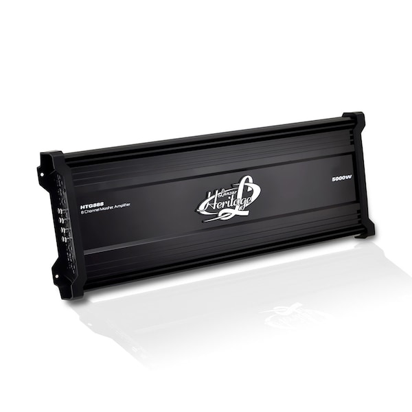 - 8 X 250W RMS @ 4 Ohms - 8 X 350W RMS @ 2 Ohms - 4 X 1,000W MAX @ 4 Ohms Bridged - 8 X 500W MAX @ 4 Ohms - Bass Boost Circuit - Bridgeable at 4ohms - 2 Ohm Stereo Stable - Chrome RCA Inputs - Stereo Line Outputs for Left and Right Channel - Low Pass Filter Controls - LPF Freq. Response: 40Hz-250Hz - High Pass Filter Controls - HPF Freq. Response: 40Hz-250Hz - Band Pass Filter Controls - BPF Freq. Response: 40Hz-3KHz - Power and Protection LED Indicators - Soft Turn-on/Turn-off - THD: 90dB - Channel Separation: >65dB - Freq. Response: 10Hz-45KHz - Fuse: 100A - Dimensions: 22.83''(L) X 2.24''(H) X 8.81''(W)