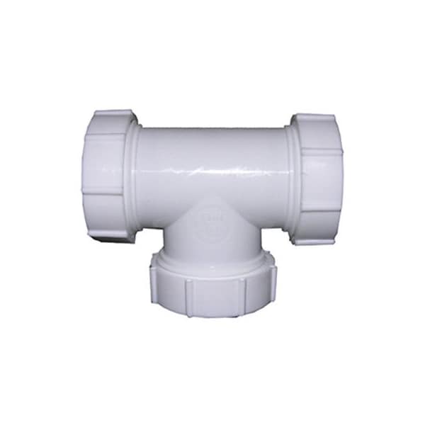 114 Or 112 OD Tube All 3 Ends, White, PVC LavatoryKitchen Drain Tee, Includes 3 Each Nuts Washers, Carded