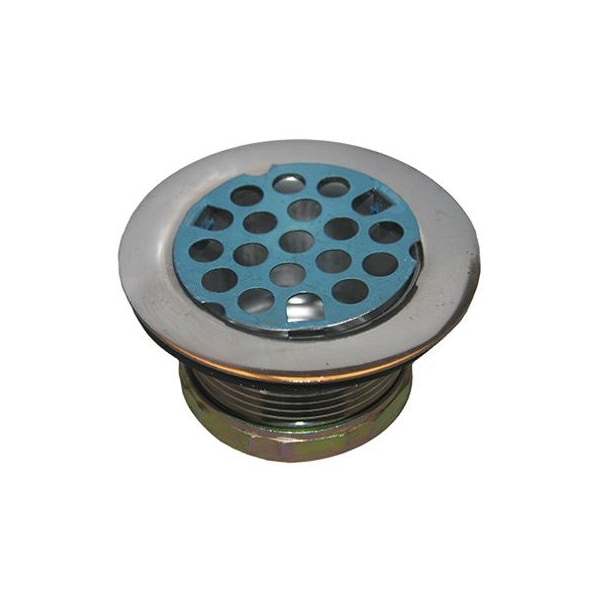 112, Chrome, Flat Top Sink Strainer, 2 OD Drain Opening With Grid Outlet, Carded