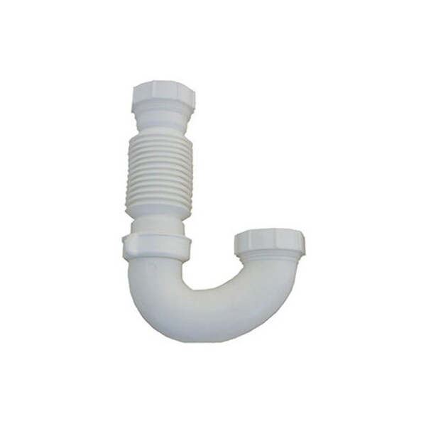 White, Flexible PVC JBend, Extends From 312 To 6, Slip Joint To 114 Or 112 OD Tube, Includes Slip Nuts Poly Washers, Carded