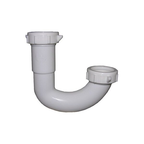 White, PVC Lavatory Drain Sink JBend, Inlet 114 OD Inlet x 114 OD Outlet Tube, Includes 2 Nuts Washers, Carded