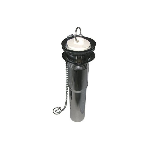 114 OD x 5, Chrome, Lavatory Drain Tailpiece, 2 Piece Pull Out Plug, 22 Gauge, Chain Stopper, Carded
