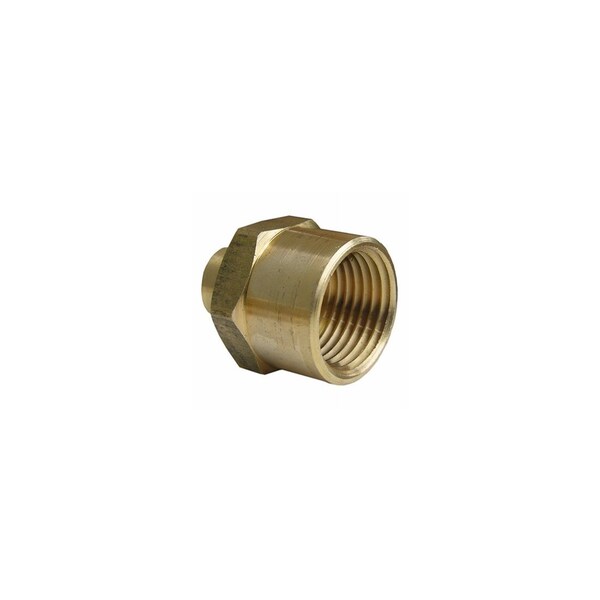 1/2in Female x 3/8in Female Pipe Thread, Brass, Reducing Hex Bushing, Lead Free, 125 LB Rated, Carded.