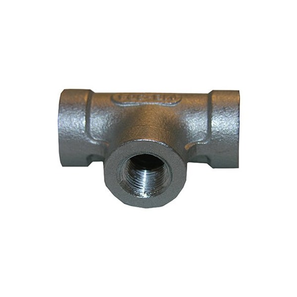 18, Stainless Steel Female Iron Pipe Tee, Type 304, 150 LB Rated Stainless, Lead Free Product, Female Pipe Threads, Carded Clam Shell