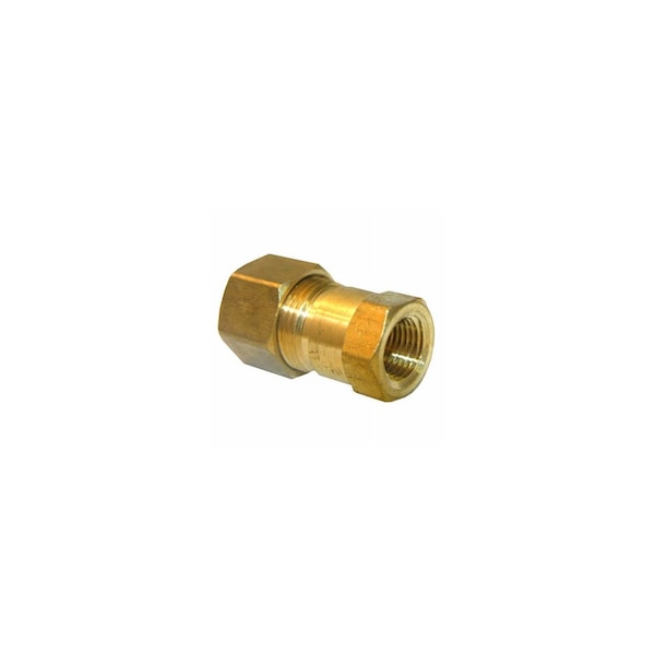 Larsen 3/8in Compressionx1/4in FPT Brass Adapter. It is used to connect 3/8in compression tubing to 1/4in female pipe thread. It is made of brass and has a pressure rating of 150 psi. Comes in Carded package.
