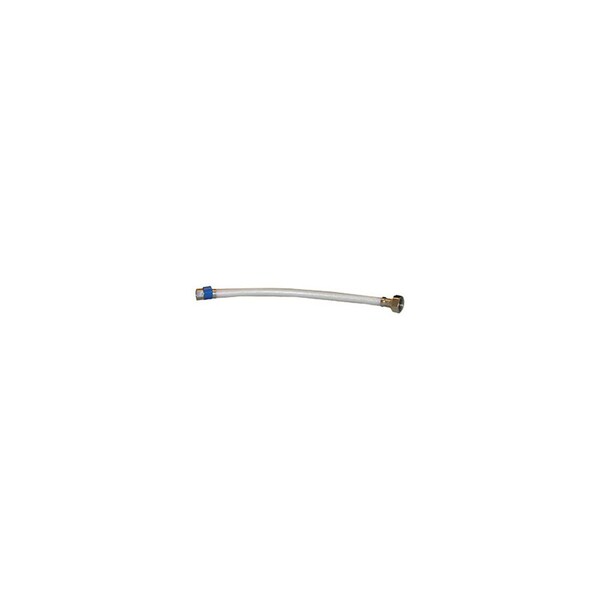 Texas, 3/8in Fine Thread Female Flare x 1/2in Iron Pipe x 12in, Braided Poly Faucet Connector, Brass Inserts & Chrome Plated Brass Nuts, Lead Free Compliant Product, Carded, Hang Tag.