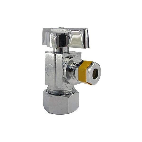 58 OD Compression Inlet x 14 Compression Outlet, Quarter Turn, Chrome, Angle Valve, California Vermont Lead Free Compliant Product, Carded