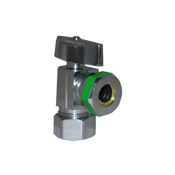58 OD Compression Inlet x 716 12 Slip Joint Outlet, Quarter Turn, Chrome, Angle Valve, California Vermont Lead Free Compliant Product, Carded