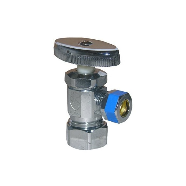 58 OD Compression Inlet x 38 OD Compression Outlet, Coarse Thread Style, Chrome, Angle Valve, California Vermont Lead Free Compliant Product, Carded