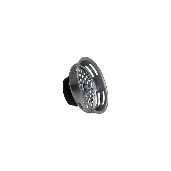 Larsen 3-3/8in Chrome Plated Replacement Drop Post Style Basket for Kitchen Sink. It is made of stainless steel and has a chrome finish. Comes in carded package.