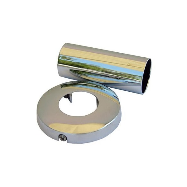 Chrome, Escutcheon Set, For Price Pfister Shower Valve, 2 Piece, 1 New Style Tube, 1 New Style Flange, Sizes 114 W x 314H x 1 W, 114 Top x 12 Height x 234 Bottom, Carded