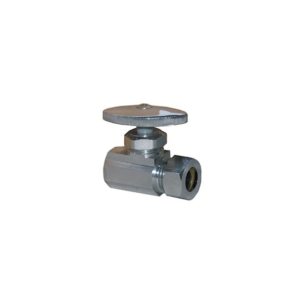 1/2in Female Pipe Thread Inlet x 7/16in Or 1/2in O.D. Slip Joint Outlet, Chrome, Straight Valve, Rubber Slip Joint Outlet, California & Vermont Lead Free Compliant Product, Carded.