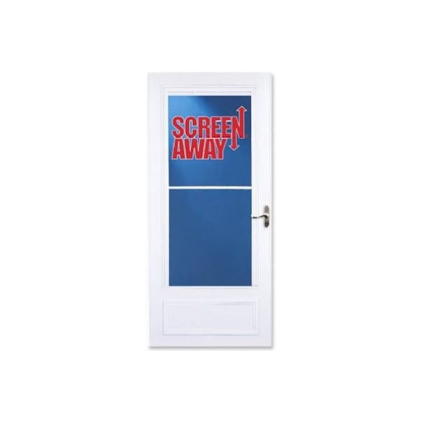 83082, 36 x 81, White Retractable Screenaway Door, Solid Wood Core With Magnetic Weatherstripping, Color Matched Bottom Sweep 2 Closers, Brush Nickel Finish Interior Exterior Securelock Handle With Built In Lock System