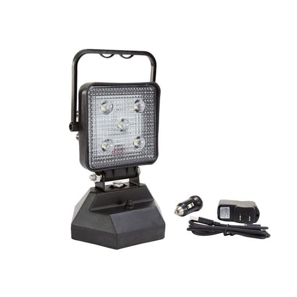 LED Light 15 Watt Rechargeable L ion Battery with USB Port 1100 Lumens. Measuring only 3.22" x 3.14" x 3", the RL 15 LED CPR from Larson Electronics is an ultra compact portable floodlight that contains five 3 watt high output LEDs that generate 1,100 lumens of cool white light while drawing 15 watts of energy. This lightweight floodlight includes a carrying handle, a rechargeable 3.7V/3600mA lithium battery, and a magnetic base for for quick and easy on the go mounting. A uniquely designed articulated light head allows for front to back adjustment over a 180° range. This light is impact and vibration resistant, dustproof, rustproof, and rated IP67 waterproof, making it ideal for the rough conditions encountered in hiking, camping, hunting, and outdoor work areas. Whether used for recreation or work or a little of both, the RL 15 LED CPR compact floodlight simply can't be beat. Light Features: Don't let its small size fool you the RL 15 LED CPR portable floodlight is a compact powerhouse built to withstand demanding outdoor conditions and rugged use. This floodlight contains five 3 watt LEDs that generate a total of 1,100 lumens of cool white light while drawing a total of 15 watts of energy. With a 6000K color temperature, this light provides superior color rendering and contrasting properties. Objects are clearly and sharply illuminated throughout the reach of the flood beam. The LED assembly is protected by a rustproof die cast aluminum housing and an impact and shatter resistant polycarbonate lens. Weather resistant, dustproof and IP67 rated waterproof, the RL 15 can be used in rough and wet outdoor conditions, including in the rain. Additionally, the RL 15 LED CPR features an articulated light head that can be manually adjusted through a 180° front to back range of motion. The operator simply pushes the light head to the position desired using fingertips.