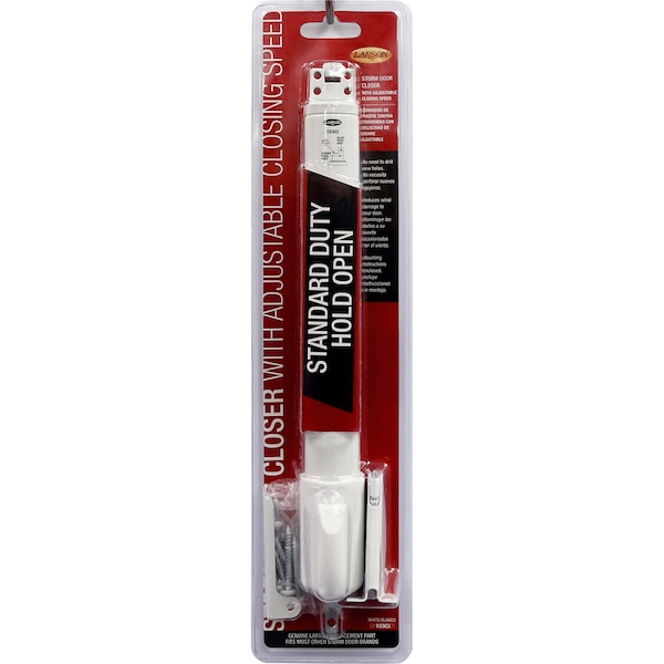 Kit includes one hold-open closer for smooth closing action, along with the necessary brackets and screws to change or add a closer.