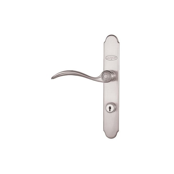 QuickFit, Brushed Nickel, Curved Handleset, Complement Your Entry Storm Door, Matching Interior Exterior Lever Handles For An Elegant Style Inside Out, Designed To Install Easily On Right Or Left Side Of Your Storm Door, Keyed Lock Offers Enhanced Security Protection, Only Fits QuickFit Door Frames From The 146 Easy Vent Selection