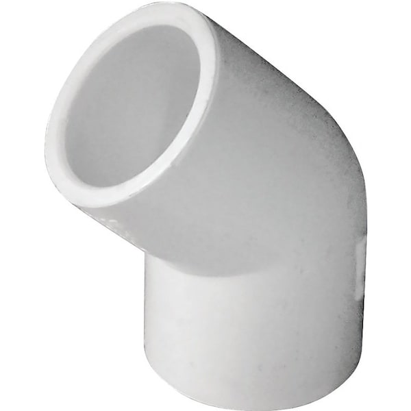 LASCO Pipe Elbow, Nominal Size 12 in, Slip Connection, Angle 45 deg, 360 psi, Operating Temperature 140 deg F, Schedule Rating SCH 40, PVC, White