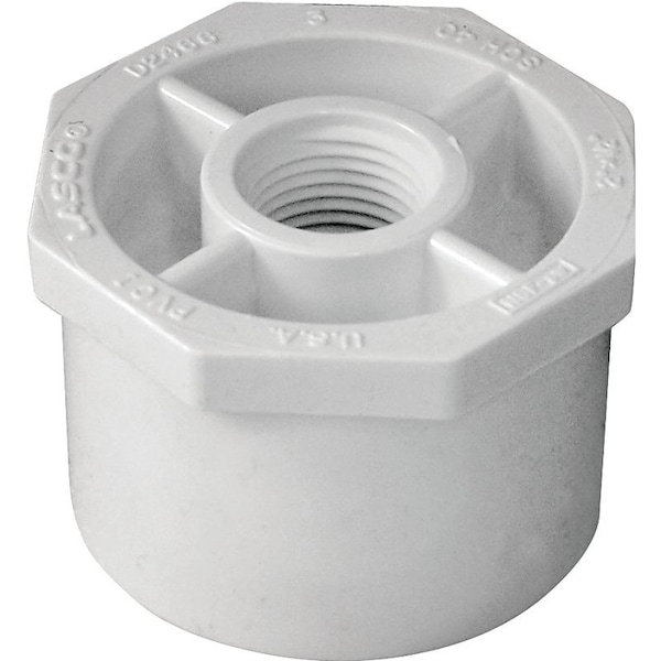 LASCO Reducing Bushing, Nominal Size 2 x 12 in, Spigot x FNPT Connection, Operating Temperature 140 deg F, Schedule Rating SCH 40, PVC, White