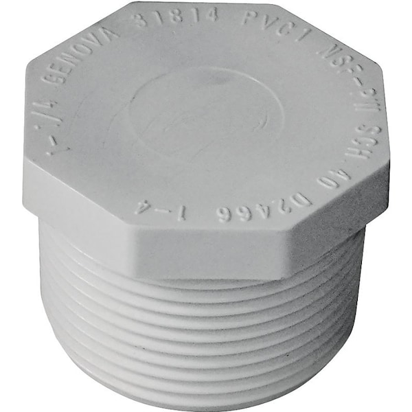 IPEX Pipe Plug, Nominal Size: 1-1/4 in, MPT Connection, 150 psi, Operating Temperature: 73 deg F, Schedule Rating: SCH 40, PVC, White, 1.3 in L