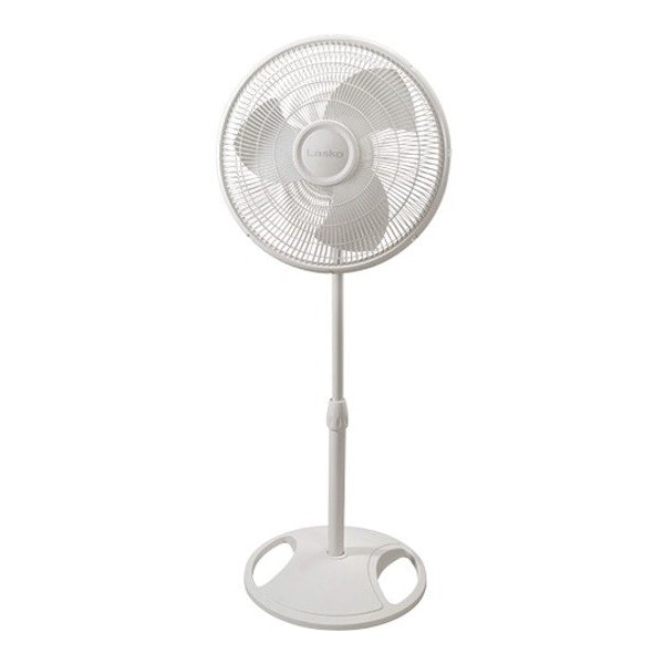 16" Oscillating Stand Fan with white finish will add a wonderful breeze to any room in your home. An excellent value, this fan produces high air output and has a number of useful features. Included are three quiet speeds, a broad 90-degree oscillation sweep, adjustable height, and a fan head with adjustable tilt. The easy-grip rotary control makes it easy to adjust to the desired speed. Assembly is easy and requires NO tools! Safety features include a patented fused safety plug. FEATURES: 3 Quiet Speeds; Fully-Adjustable Height; Easy-Grip Rotary Control; Ideal for All Rooms; ETL/cETL Listed.