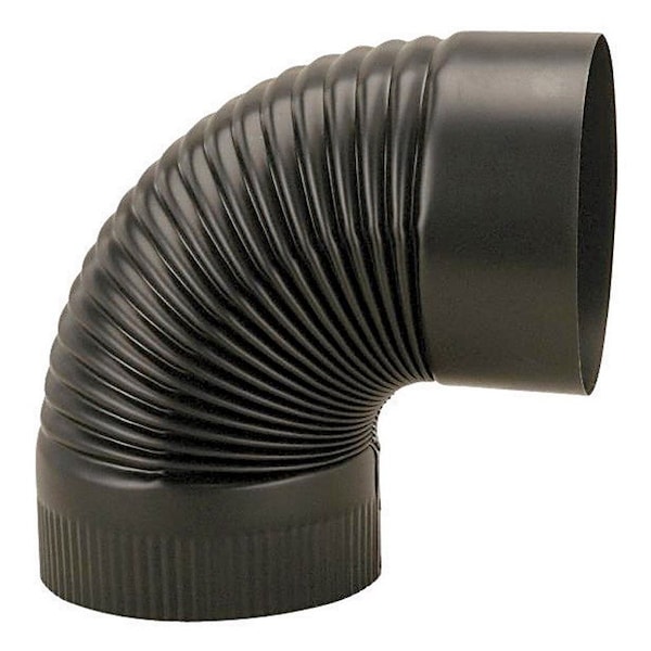 The 6 in. black corrugated elbow is used to connect single wall stove pipe to chimneys and vent stacks. Heavy duty 1 piece construction provides a very sturdy and leak free application. Highly durable, 24 gauge construction features a crimped end to easily assemble to stove pipe of similar diameter.