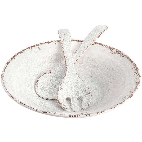 Give lunch some extra charm with the Laurie Gates Mauna 3 Piece Melamine Serving Bowl Set and its rustic styling. Featuring a crackled design, the serving pieces mimic a country side look with out the actual wear and tear. Made of shatter resistant melamine, the serveware set is perfect for outdoor gatherings and indoor parties. Includes a large 14 inch bowl and serving utensils to match. Enjoy bringing the set out to parks, backyards, or enjoy it at the dinner table.