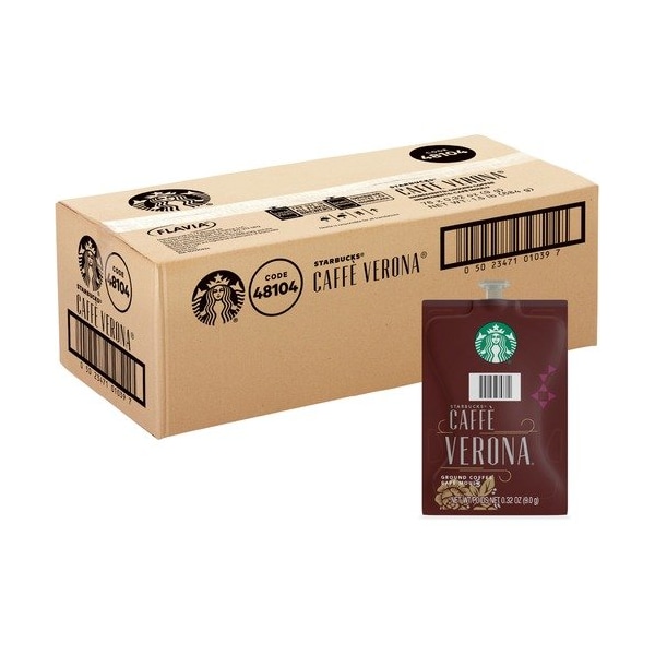 Caffe Verona Coffee in a convenient Freshpack brings carefully selected, authentic flavors right to your workplace. Originally imagined for a single Seattle restaurant in 1975, this dark roast features a dark cocoa texture and roasty sweetness. Starbucks named it Verona after the city that inspires so many, and we invite you to capture this same inspiration in your office. Pack-to-cup brewing process ensures nothing touches the ingredients other than hot water so your drink does not taste like previous brews. For single-serve use, Freshpacks stay completely sealed until the moment they are brewed, eliminating exposure to light, air and germs. Freshpack coffee is designed for use with Flavia single-serve, coffee brewers not included. Made with a commitment to sustainability, innovative pouches are recyclable through Terracycle.