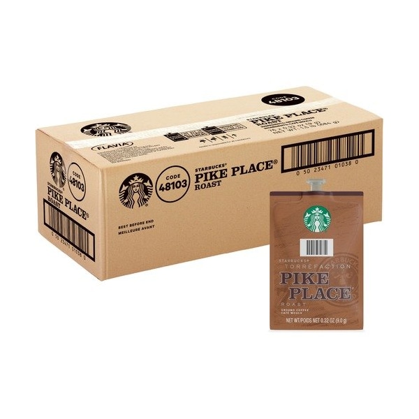 Pike Place Coffee in a convenient Freshpack brings carefully selected, authentic flavors right to your workplace. To honor Starbucks' first store in Seattle's Pike Place Market, they created this smoothly delicious, medium-roast coffee with subtle flavors of cocoa and toasted nuts. Pack-to-cup brewing process ensures nothing touches the ingredients other than hot water so your drink does not taste like previous brews. For single-serve use, Freshpacks stay completely sealed until the moment they are brewed, eliminating exposure to light, air and germs. Freshpack coffee is designed for use with Flavia single-serve, coffee brewers not included. Made with a commitment to sustainability, innovative pouches are recyclable through Terracycle.