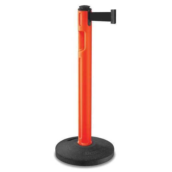 Barrier Post with Belt, Maximum Overall Height 38 1/4 in, Legend No Legend, Legend Color Not Applicable, Number of Belts 1, Belt Length 12 ft, Belt Width 2 in, Belt Color Black, Belt Pattern No Pattern, Post Color Orange, Product Type Stanchion, Minimum Overall Height Not Applicable, Post Diameter 3 1/2 in, Post Material Plastic, Post Finish Textured, Base Type Basic, Base Configuration Detachable, Base Diameter 16 in, Base Material Rubber, Base Finish Unfinished, ADA Compliance No