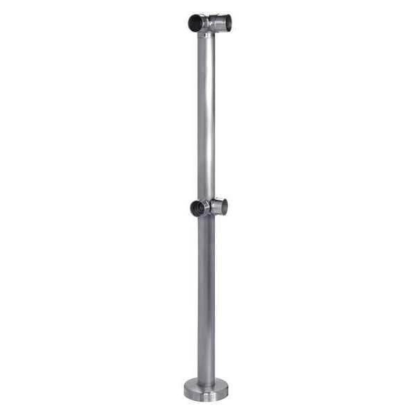 Double Line Guardrail Post Corner, Overall Height 42 In., Overall Length 1-43/64 In., Color Silver, Stainless Steel, Top Rail Height 42 In., Rail Size 1-1/2 In., Rail Shape Round, Midrail Height 22 In., Mounting Plate Dimensions 4 In. x 5/16 In., For Use With Mfr. No. 49-134/4