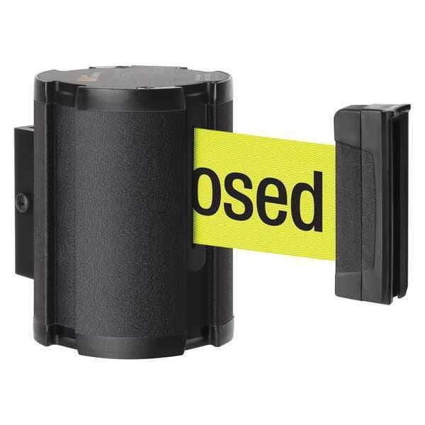 Retractable Belt Barrier, Mounting Style Wall, Belt Length 15 ft, Belt Color Yellow, Legend Please Do Not Enter - Temporarily Closed, Frame Color Black, Overall Height 2 1/2 in, Includes Wall Receptacle, Includes Mounting Hardware Included