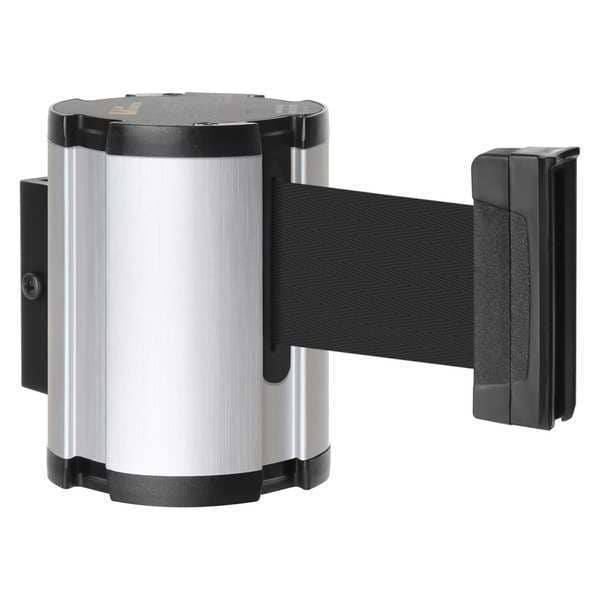 Retractable Belt Barrier, Mounting Style Wall, Belt Length 15 ft, Belt Color Black, Legend No Legend, Legend Color Not Applicable, Frame Color Silver, Overall Height 2 1/2 in, Frame Material Aluminum, Frame Finish Satin Aluminum, Includes Wall Receptacle, Includes Mounting Hardware Included